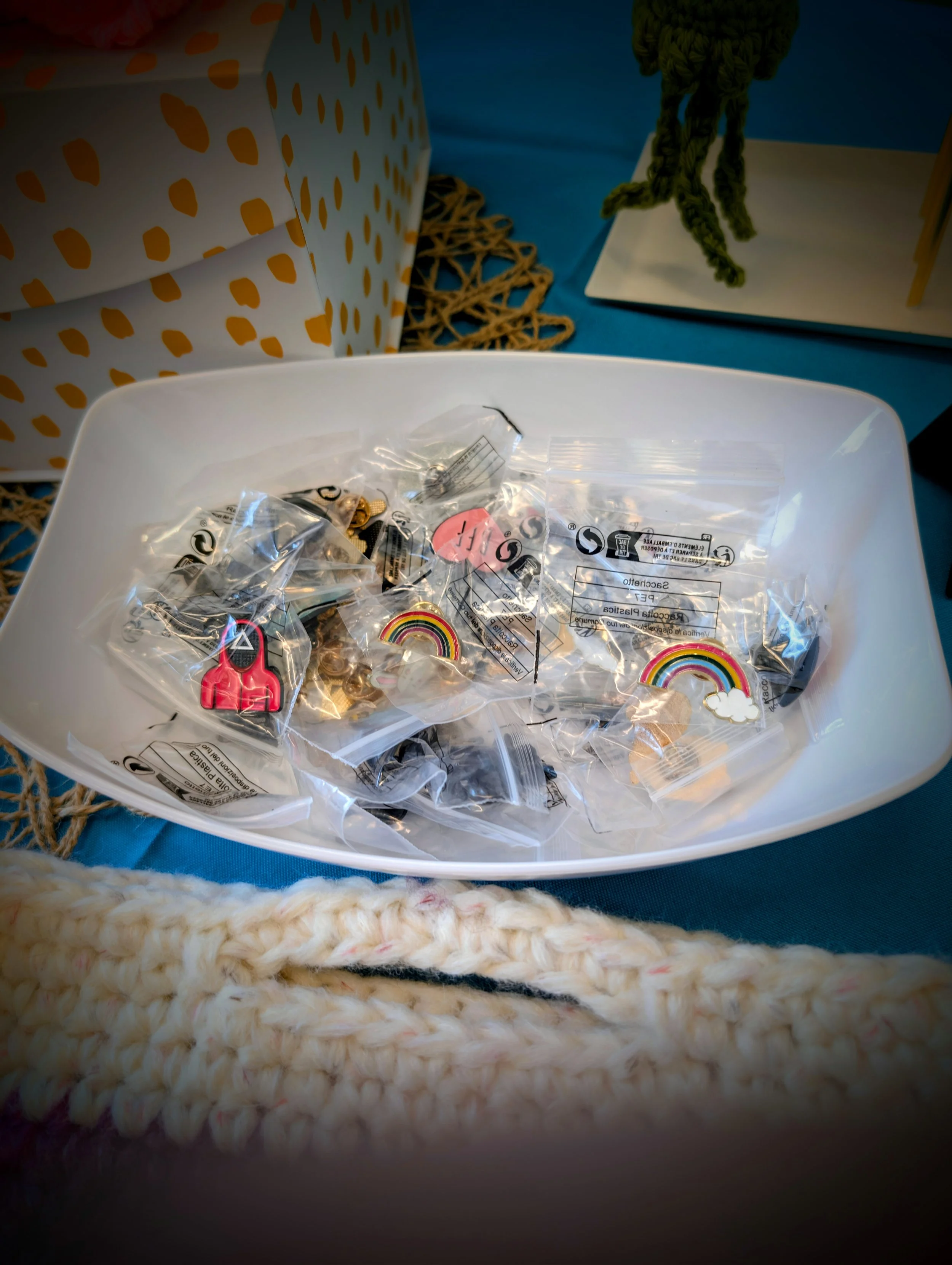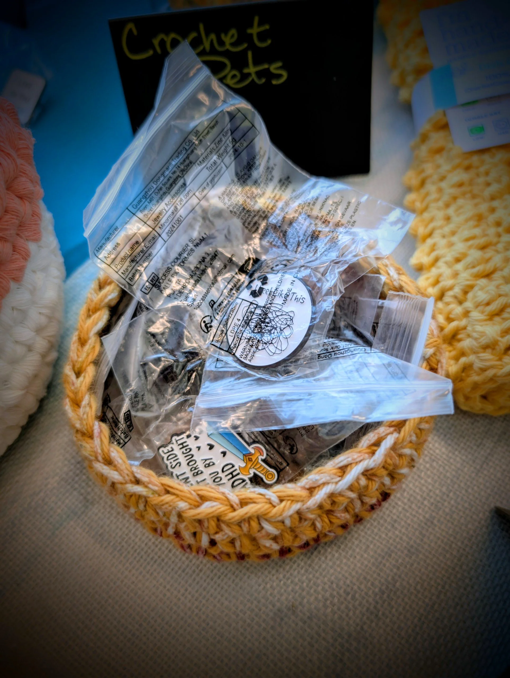 Shop Clear All | Cloths | Coasters | Basket | Bathroom Accesories | Handbag | Kitchen Accessories | Purse | Towels | Toys | Filters Categories All Cloths Coasters Basket Bathroom Accesories Handbag Kitchen Accessories Purse Towels Toys Filter Clear Filter Coral & Taupe Striped Storage Basket $45.00 Creme Small Stuff Basket $7.00 Hand-Stitched Multipurpose Crochet Basket $7.00 The "First Sips" Crochet Cup Basket $7.00 Crochet Basket $15.00 Bling Pins $1.00 Scrunchies Sale Price: $3.00 Original Price: $5.00 Sale Hidden Functionality Coaster Set $15.00 Towel Holder $3.00 Organize in Style with This Nested Trio Bowl Set $45.00 Floral Coaster Set $25.00 Cozy Clean Dish Cloths $5.00 Aquadic Pocket Pal Keychain $5.00 The "Carry-All" Companion $50.00 The "Spa Day" Essential - Wash Cloths $5.00 No results found No results match your search. Try removing a few filters.